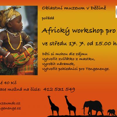 Africká tvůrčí dílna je určena především pro děti, které si v tento den mohou v děčínském muzeu vlastnoručně vytvořit zvířátko z mastku, vyrobit náramek s afrických korálků nebo vytvořit pohlednici pro Tengenenge, což je největší sochařská komunita na světě, kterou finančně podporuje Spolek přátel Tengenenge (více informací www.tengenenge.cz).
