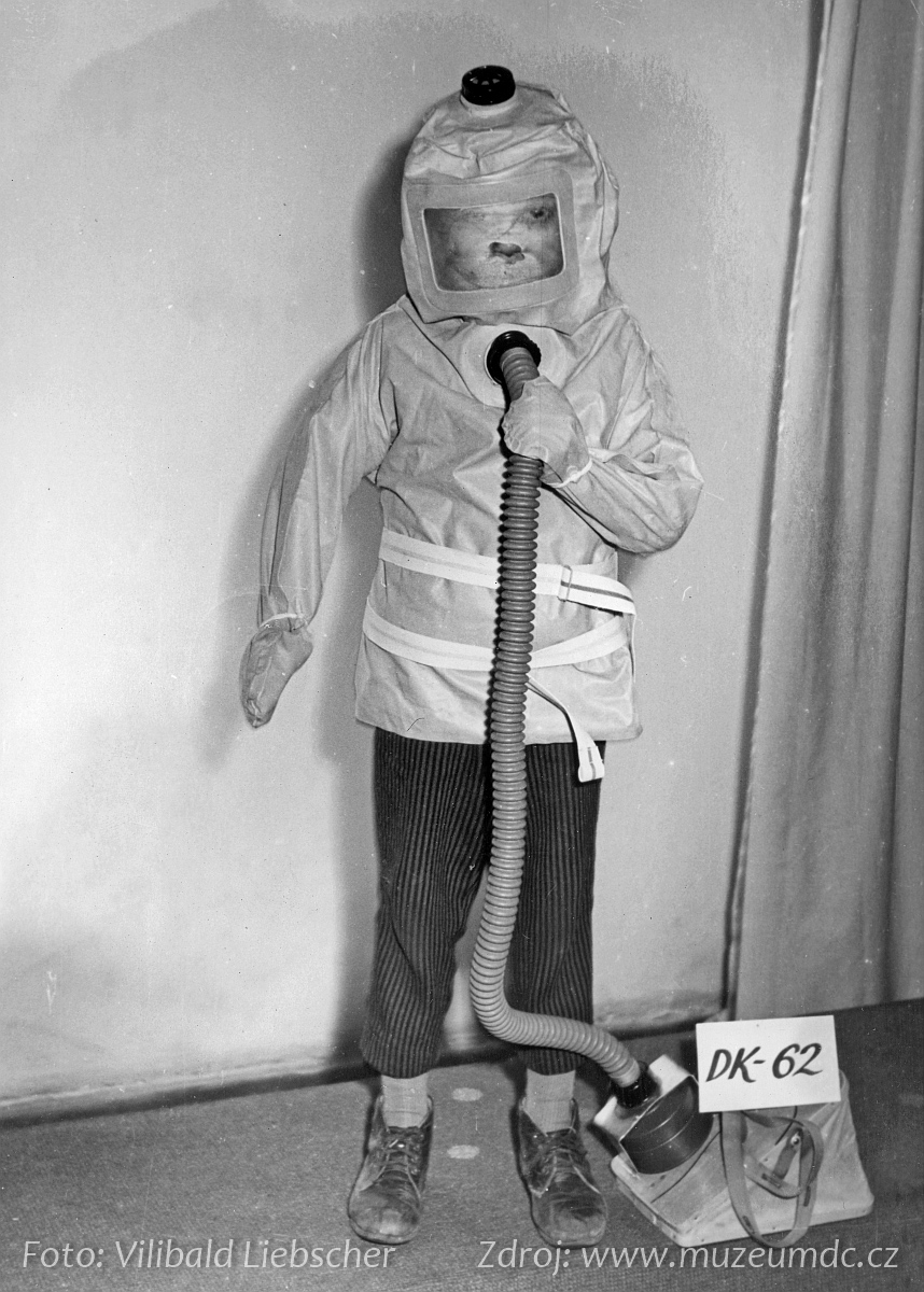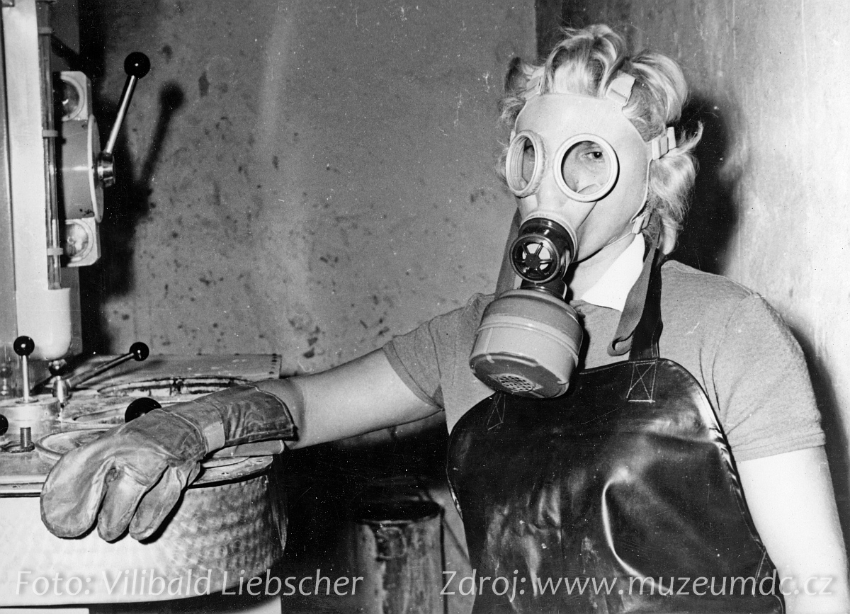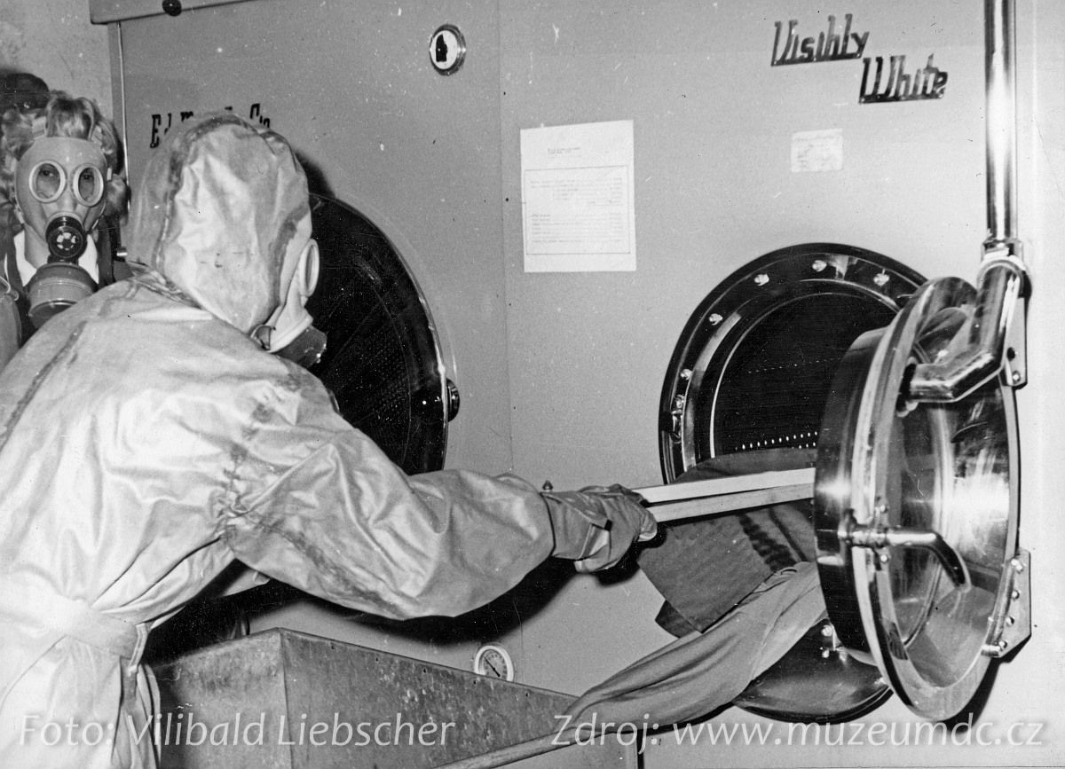 Cvičení civilní obrany především před imperialistickým Západem. Ale pračky se, jak je vidět, používaly ze Západu.