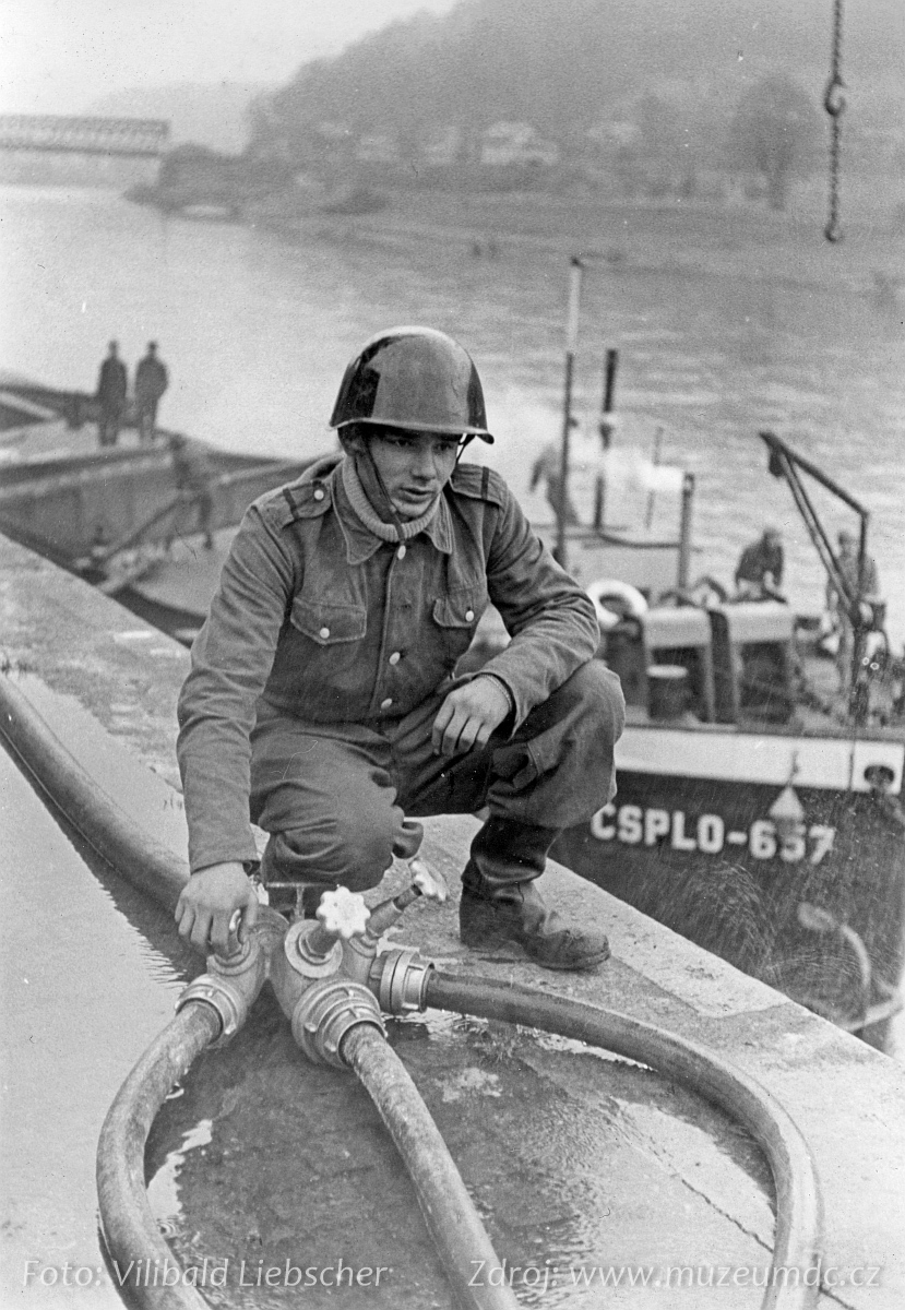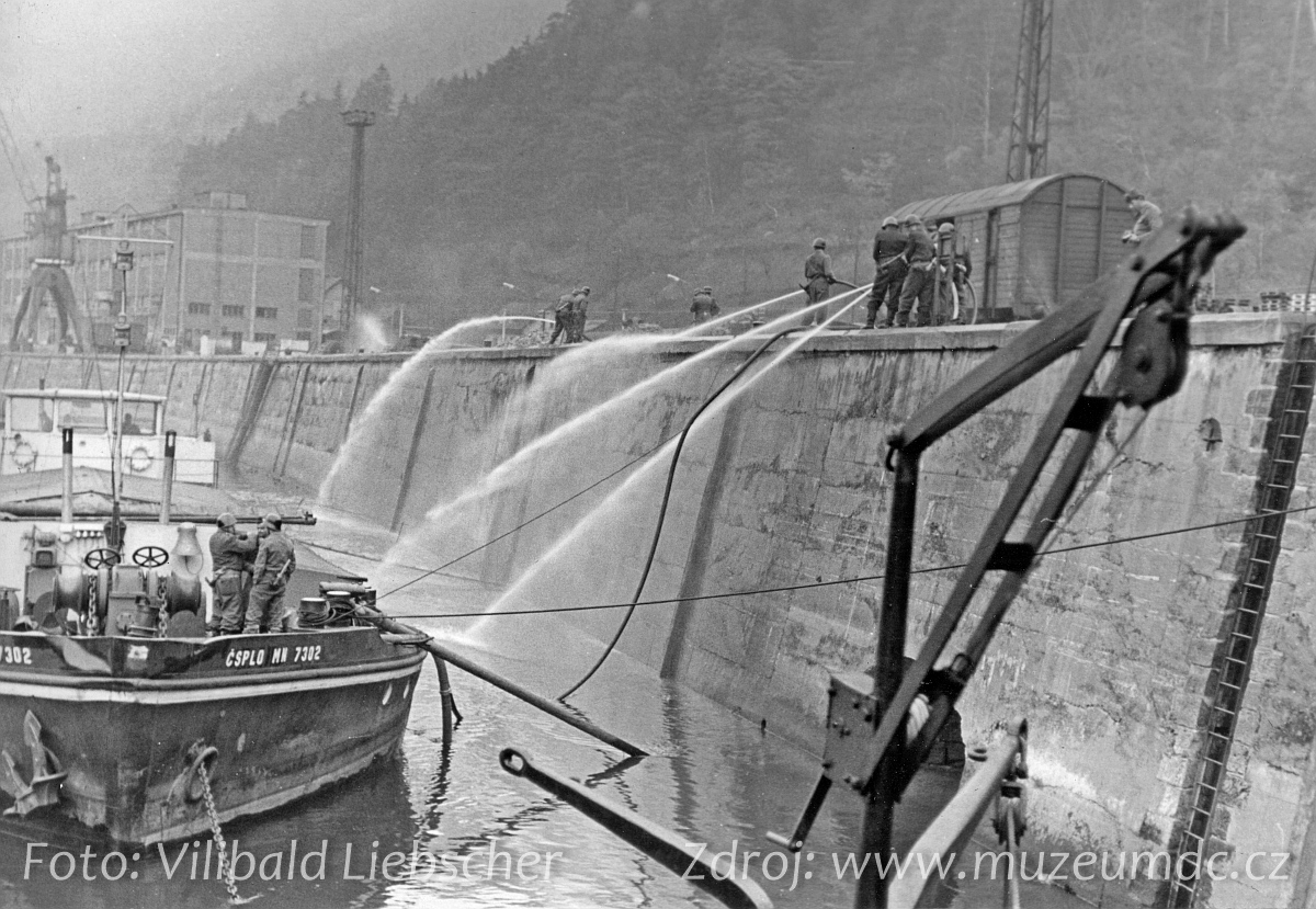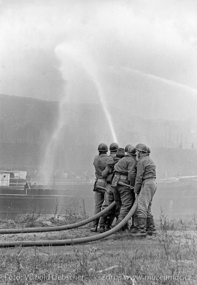 Hasičské cvičení v rámci civilní obrany, zimní přístav, Děčín V – Rozbělesy