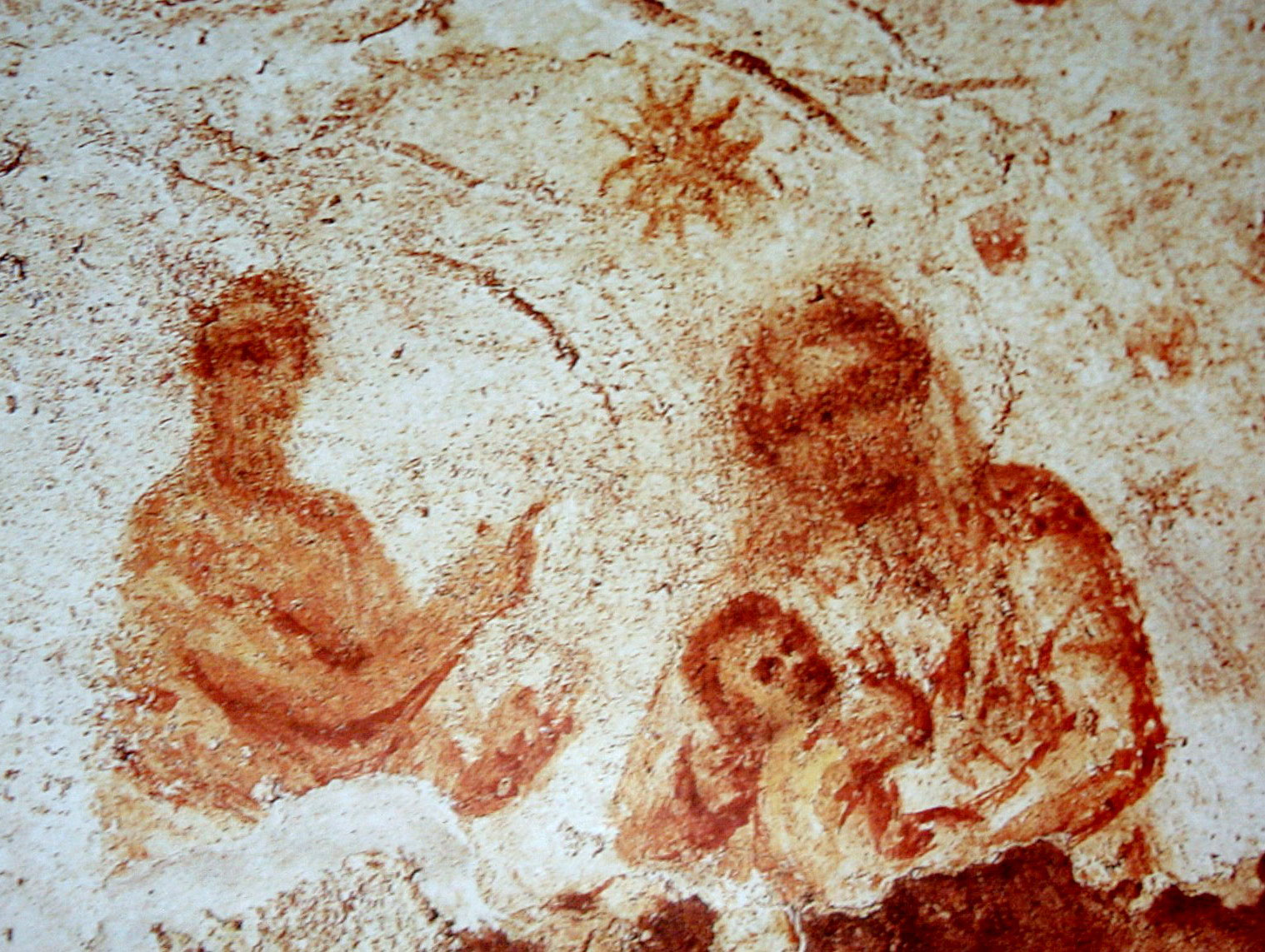Nejstarší vyobrazení madony s dítětem ze 3. století n. l. v Priscilliných katakombách v Římě (zdroj: Wikimedia Commons, KAI40, CC BY-SA 3.0)
