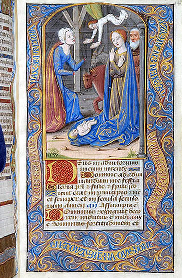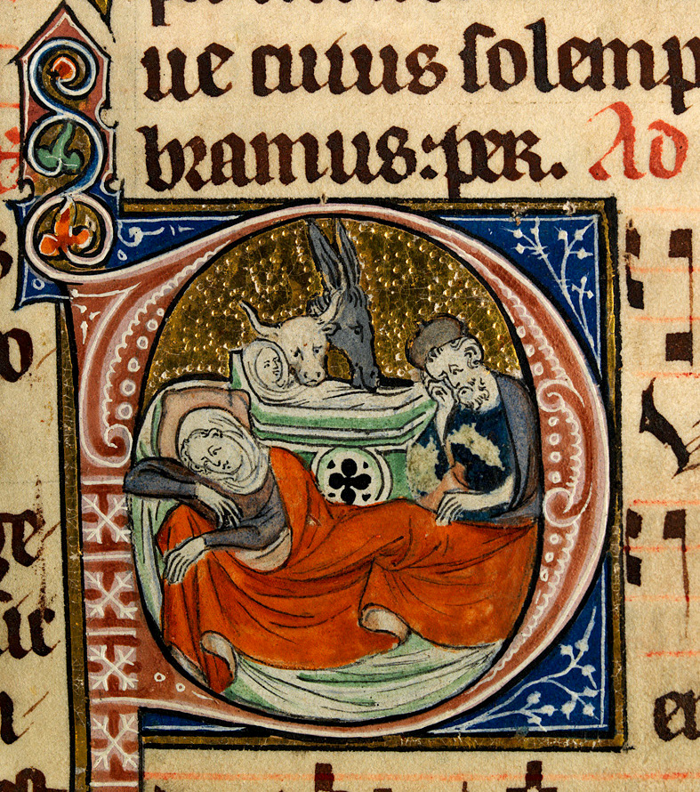 Narození Páně, Sherbrookeský misál, kolem roku 1315, Národní knihovna Walesu (volné dílo na Wikimedia Commons)