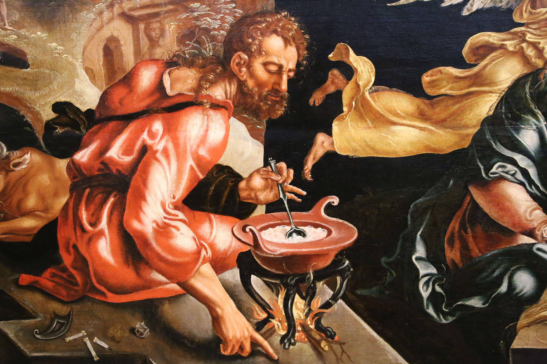 Sv. Josef připravuje kaši (autor Maarten van Heemskerck, 1545, zdroj Wikimedia Commons, CC BY 3.0)